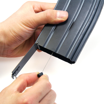 マガジン底部分を開いてワイヤーを3回引っ張るだけでマガジンゼンマイが巻けます