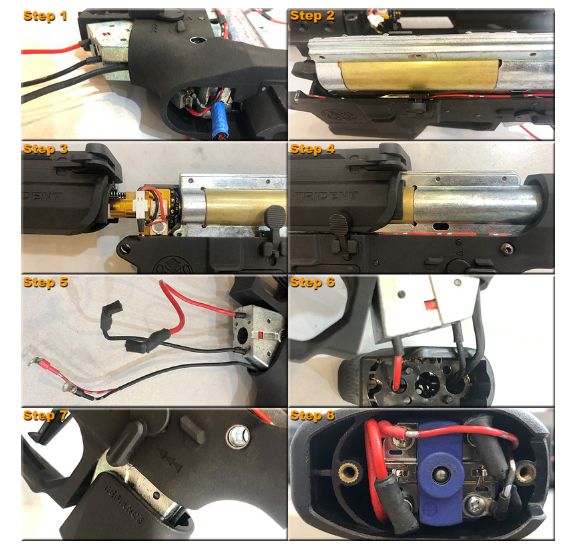 付属品として、Dual UV LED基板/トレーサーモジュールが含まれ、チャンバーにこのユニットを組み込むことで、暗所において蓄光BB弾を発光させるトレーサー機能を追加することができます。 トレーサーユニットは直流7V〜15V(2-4セル Li-Po、6-13セルNICad)で稼働させることが可能です。